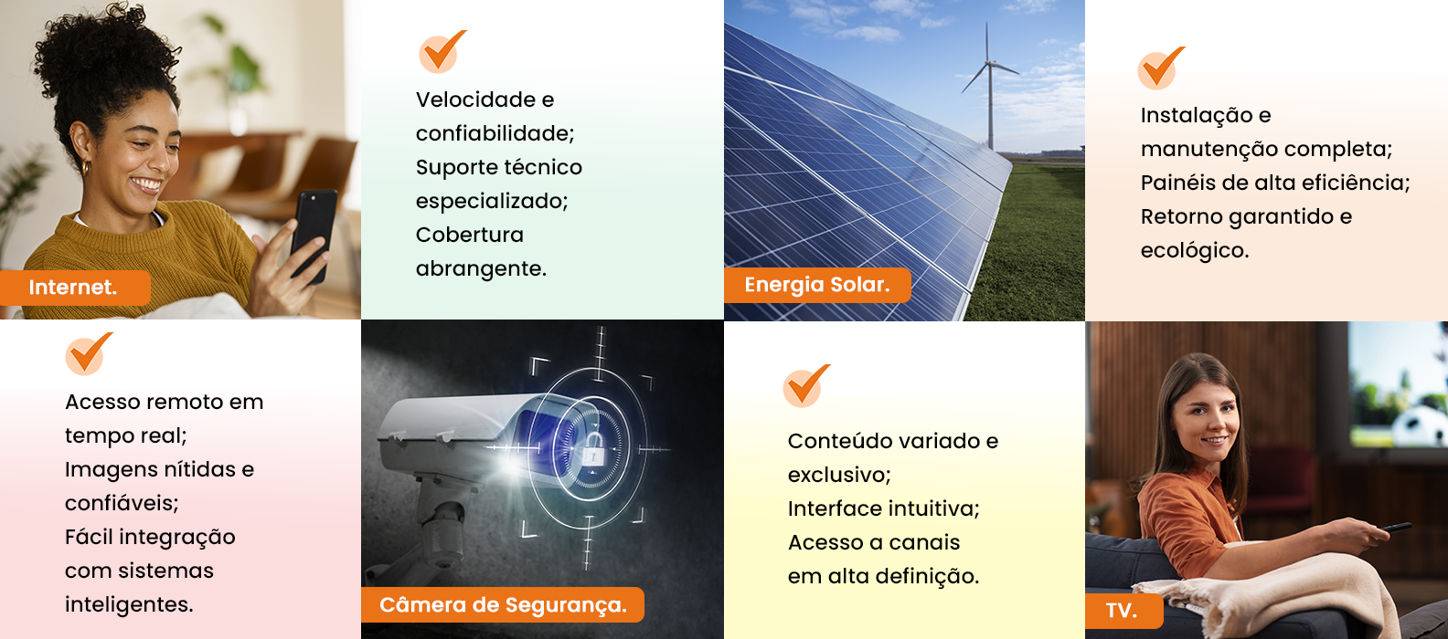 Internet para o dia a dia, segurança para a família e economia com energia solar.
